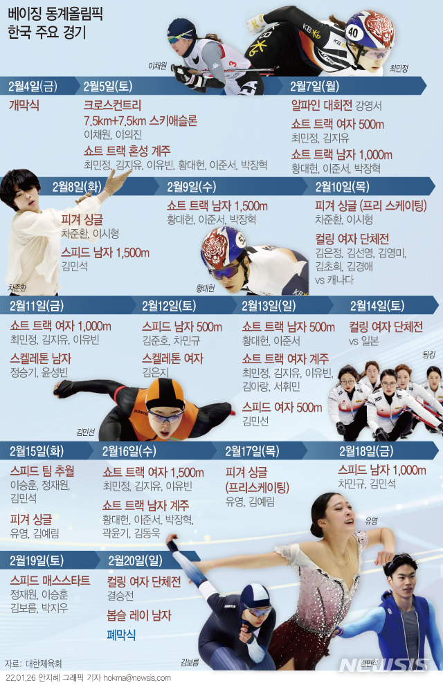 2022 베이징 동계 올림픽이 개최되었습니다. 우리나라 올림픽 대표팀의 경기일정이 어떻게 되는지 매우 궁금할텐데요. 아래에 상세하게 정리되었으니 참고 바랍니다.