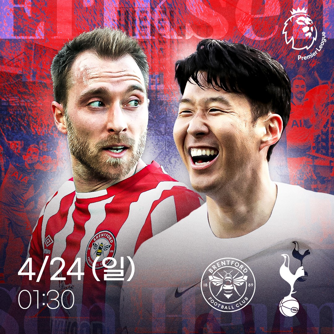 토트넘 브렌트포드의 경기는 2022년4월24일 일요일 새벽 1시 30분에 있습니다.