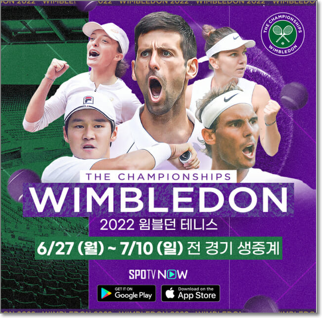 2022 윔블던 테니스대회는 SPOTV, SPOTV NOW, SPOTV ON 채널에서 시청 가능합니다. TV 시청이 어렵다면 아래의 스포티비 나우를 통해서 PC 또는 모바일에서 시청 가능합니다.