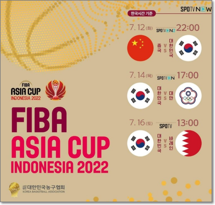 2022 국제농구연맹 아시안컵 남자 농구 대표팀이 중국, 대만, 바레인과 차례로 예선 경기를 치릅니다. 4강 이상의 목표를 두고 있는데요. 자세한 일정 및 시청 방법을 안내드리겠습니다.