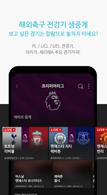 유럽 축구 전경기를 실시간 생중계로 시청 하실 수 있습니다. 손흥민 선수가 뛰고 있는 영국 프리미어 리그 뿐 아니라 라리가 UCL, UEL 전 경기를 실시간 생중계하며 EPL 리그는 라운드당 최대 8경기를 생중계합니다.
