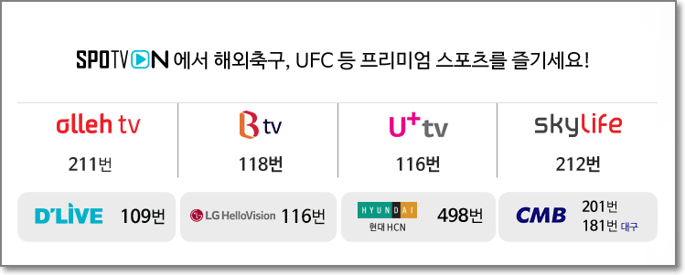 물론 손흥민 선수가 뛰는 경기는 전부 무료 생중계로 시청이 가능합니다. 스포티비를 통해 VOD와 해외축구, NBA, UFC, 테니스, 골프 등 다양한 종목의 실시간 중계를 무료 시청하시고 하이라이트 영상도 감상하시기 바랍니다.