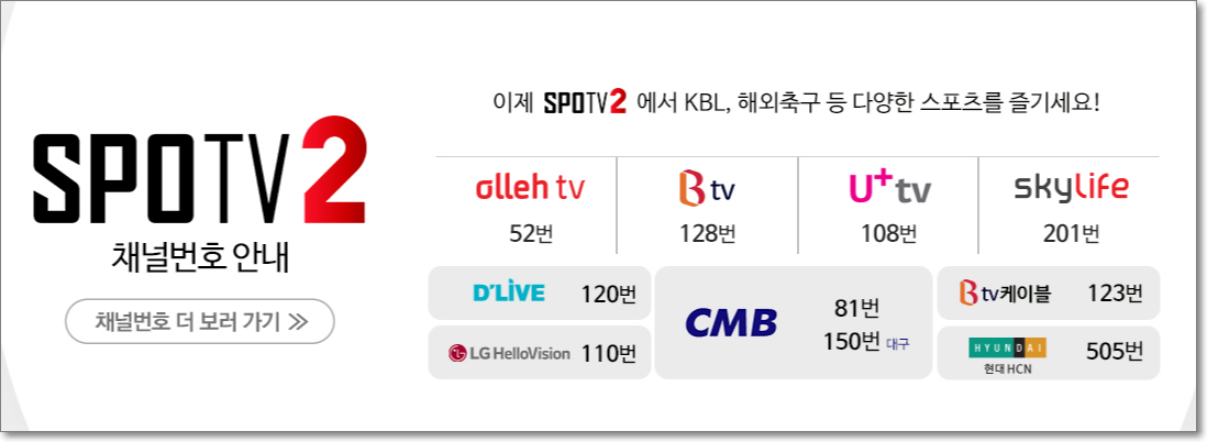 스포티비2 채널 번호 안내