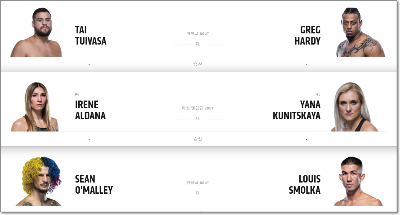 여성 밴텀급 알다나 vs 쿠니츠카야