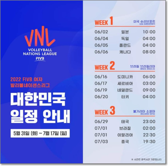■ 2022 VNL 경기일정(한국시간)