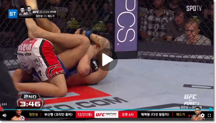 UFC 경기도 일부 무료 실시간 시청이 가능하니 SPOTV NOW를 통해 시청하시기 바라며 메인 카드 경기는 유료 회원만 시청하실 수 있습니다.