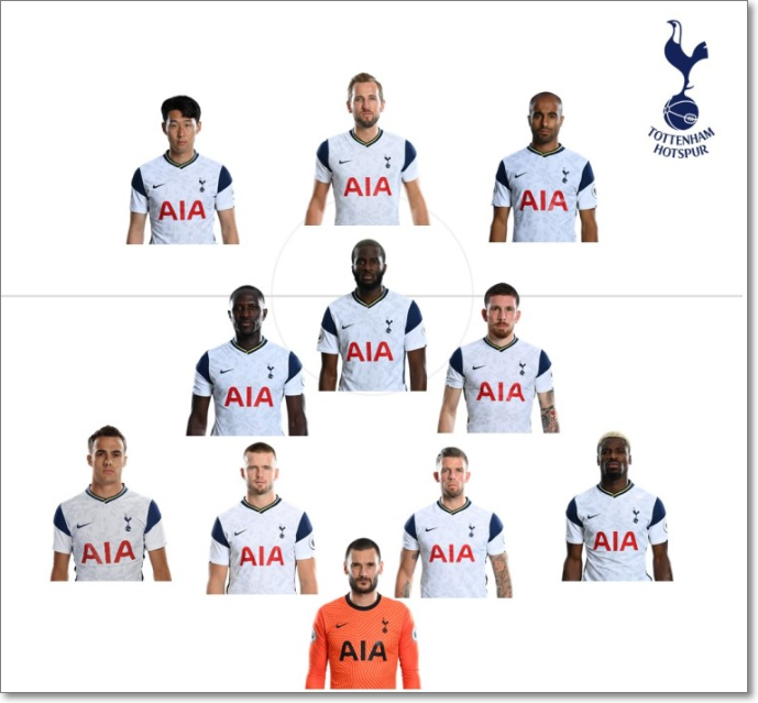 중원은 무사 시소코와 피에르-에밀 호이비에르가 구축합니다. 포백은 벤 데이비스, 조 로든, 토비 알더베이럴트, 세르쥬 오리에가 형성하고, 골문은 위고 요리스가 지킬 것으로 예상됩니다.