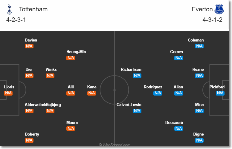 픽포드, 루카 디녜, 예리 미나, 마이이클 킨, 시무스 콜먼, 두쿠레, 알랑, 안드레 고메스, 하메스 로드리게스, 도미닉 칼버트-르윈, 히샬리송