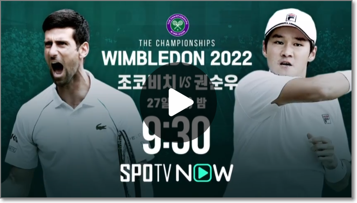 2022 윔블던 테니스대회는 SPOTV, SPOTV NOW, SPOTV ON 채널에서 시청 가능합니다. TV 시청이 어렵다면 아래의 스포티비 나우를 통해서 PC 또는 모바일에서 시청 가능합니다.