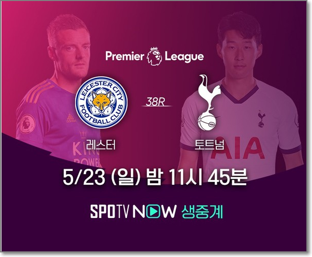 토트넘과 레스터시티의 2020-2021시즌 EPL 38라운드 경기는 24일 밤 00시 00분 스포티비(SPOTV), 프리미엄 스포츠 채널 스포티비 온(SPOTV ON), 온라인 스포츠 OTT 서비스 스포티비 나우(SPOTV NOW)에서 생중계됩니다.