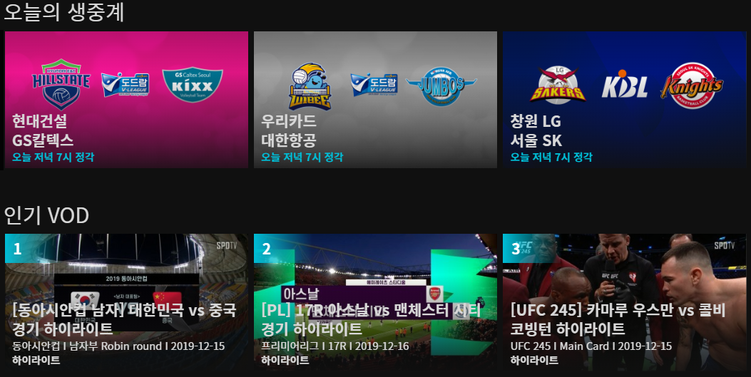 물론 손흥민 선수가 뛰는 경기는 전부 무료 생중계로 시청이 가능합니다. 스포티비를 통해 VOD와 해외축구, NBA, UFC, 테니스, 골프 등 다양한 종목의 실시간 중계를 무료 시청하시고 하이라이트 영상도 감상하시기 바랍니다.